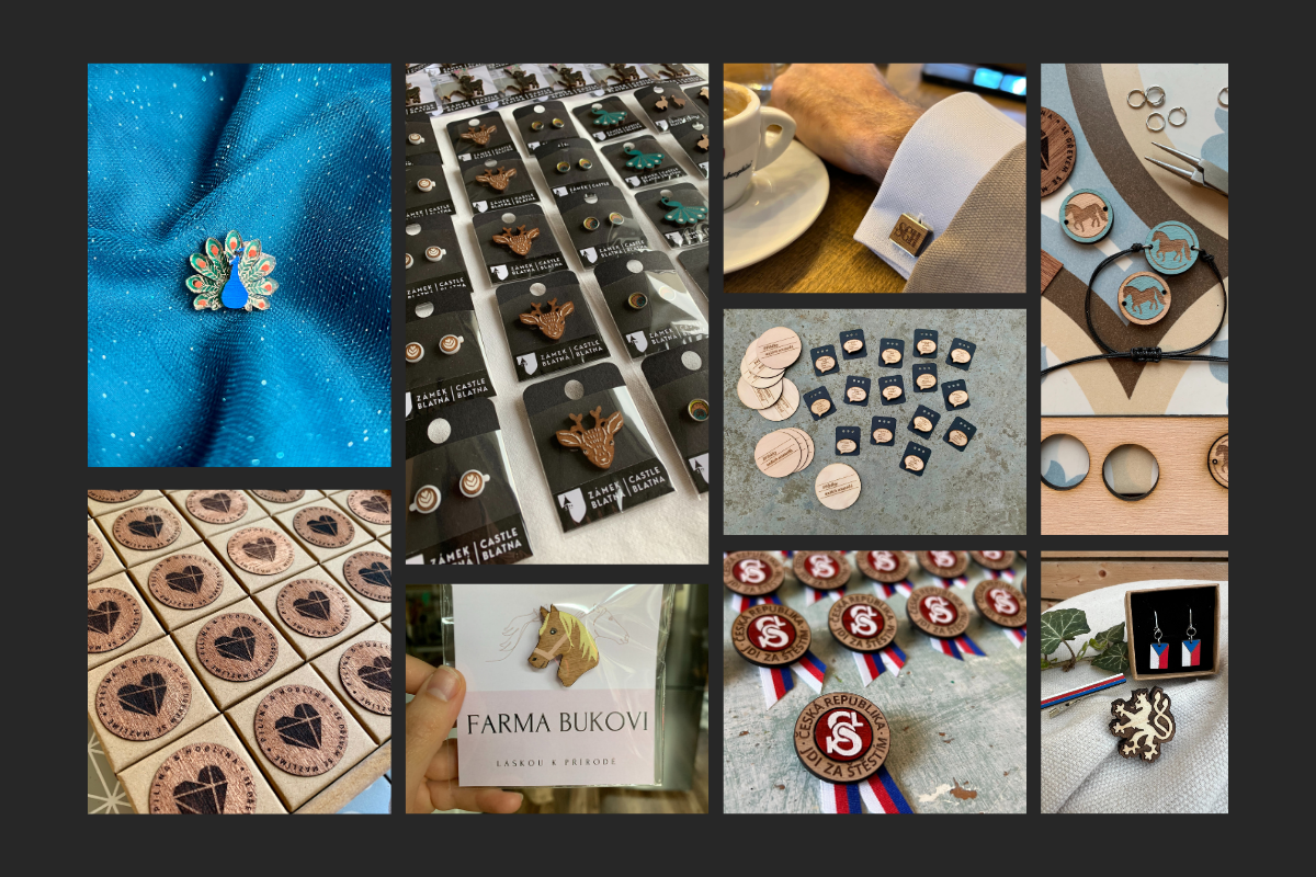Ať už jsou to manžetové knoflíčky či špendlík do klopy pro pány nebo náušnice a brože pro dámy. Náramek? Přívěšek? Vizitkář? Nebo rovnou celou kolekci včetně stojanu s vaší tématikou?
